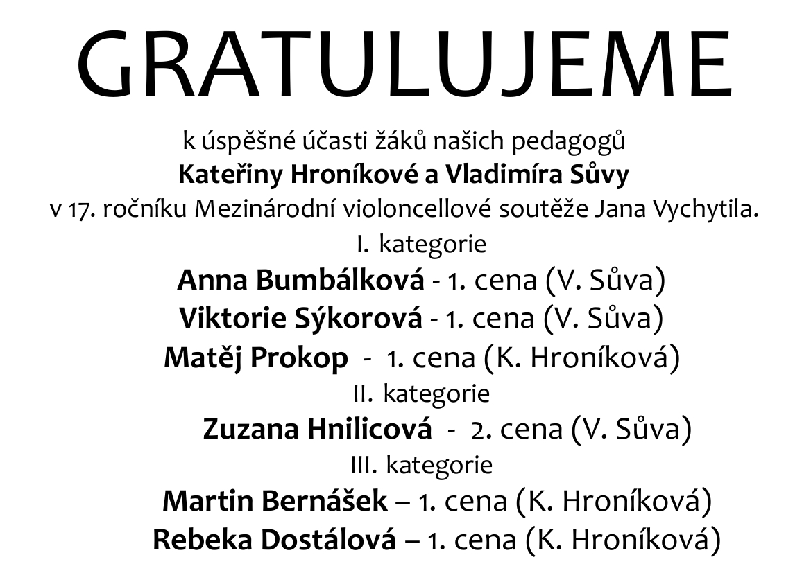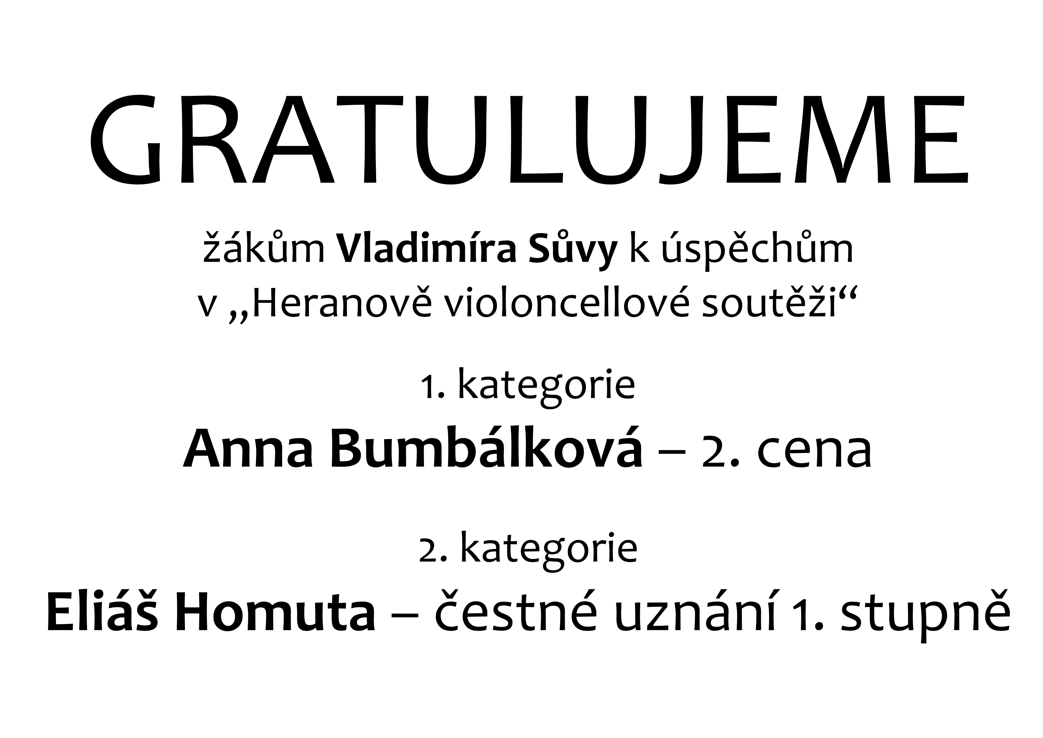 Gratulujeme – žákům Vladimíra Sůvy k úspěchům v „Heranově violoncellové soutěži“