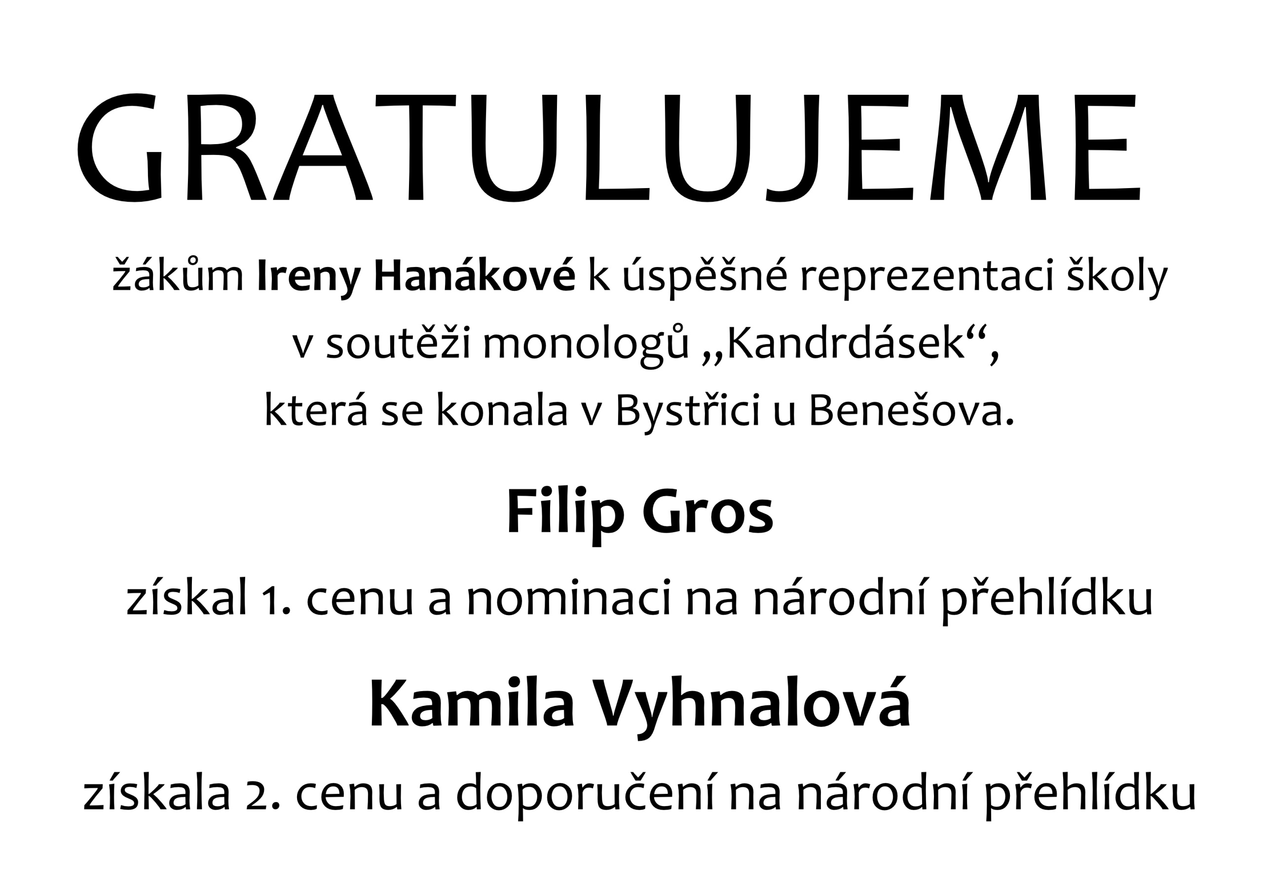 Gratulujeme – žákům Ireny Hanákové k úspěchům v soutěži Kandrdásek