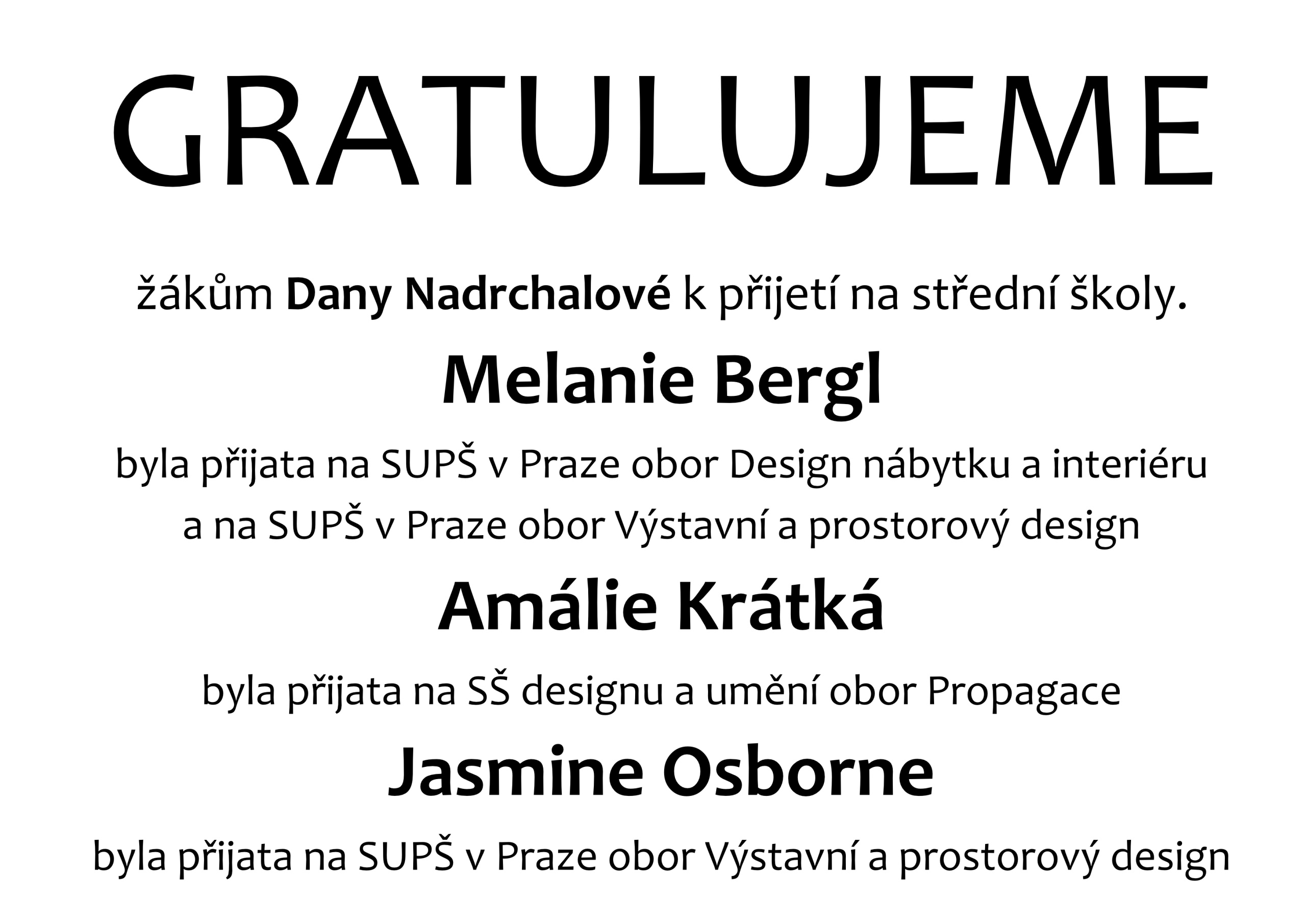 Gratulujeme – žákům Dany Nadrchalové k přijetí na střední školu