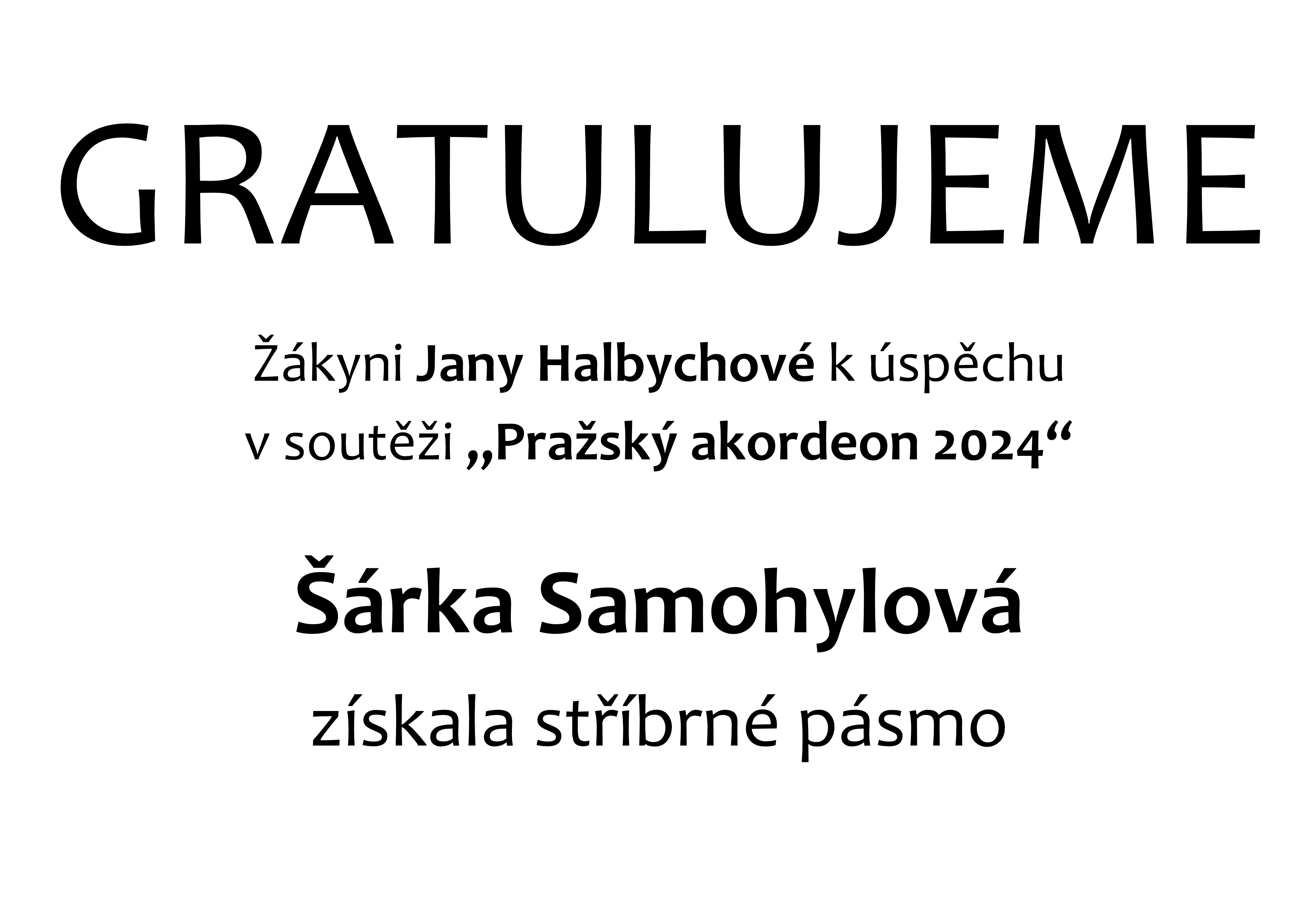 Gratulujeme – Šárka Samohylová získala stříbrné pásmo v soutěží „Pražský akordeon 2024“