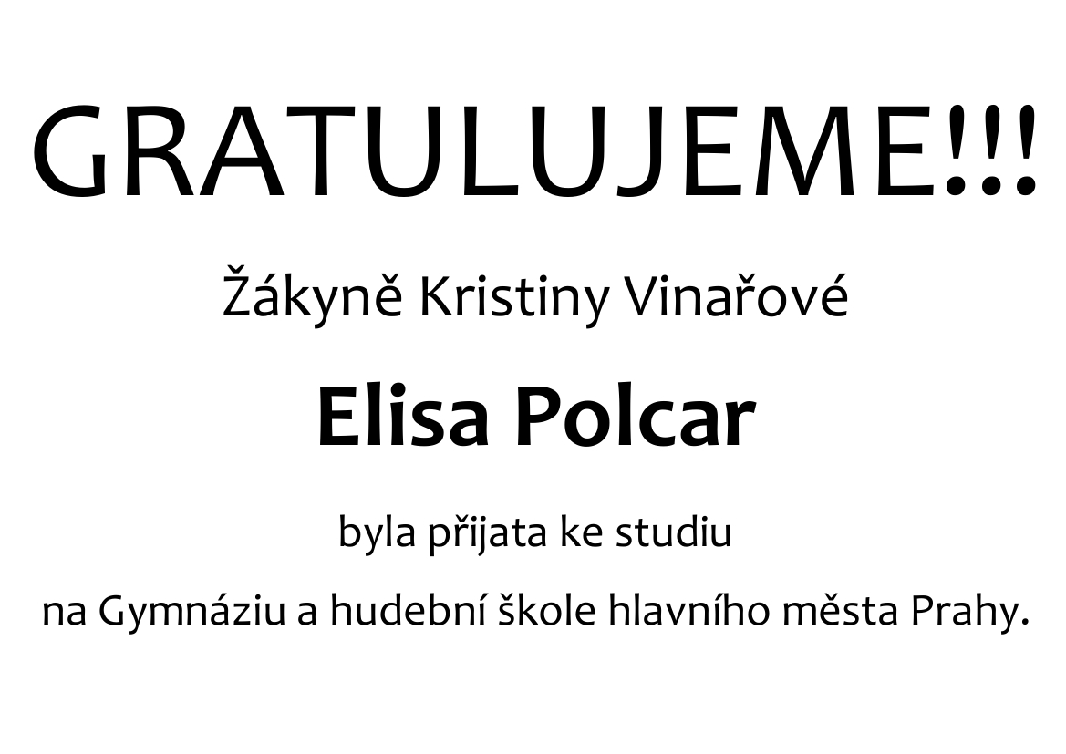 Gratulujeme – Elišce Zámečníkové k přijetí na konzervatoř