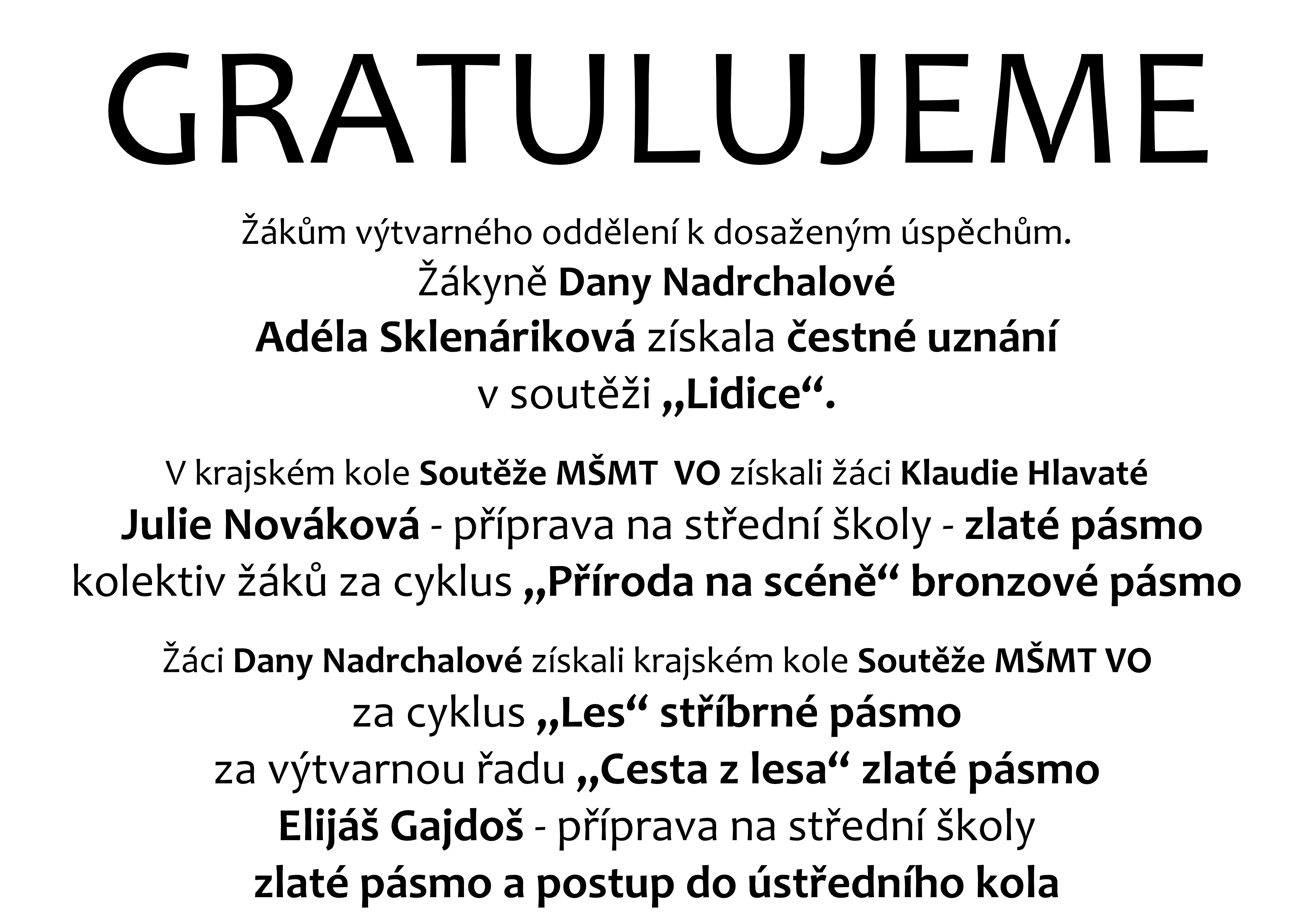 Gratulujeme – žákům výtvarného oddělení k dosaženým úspěchům