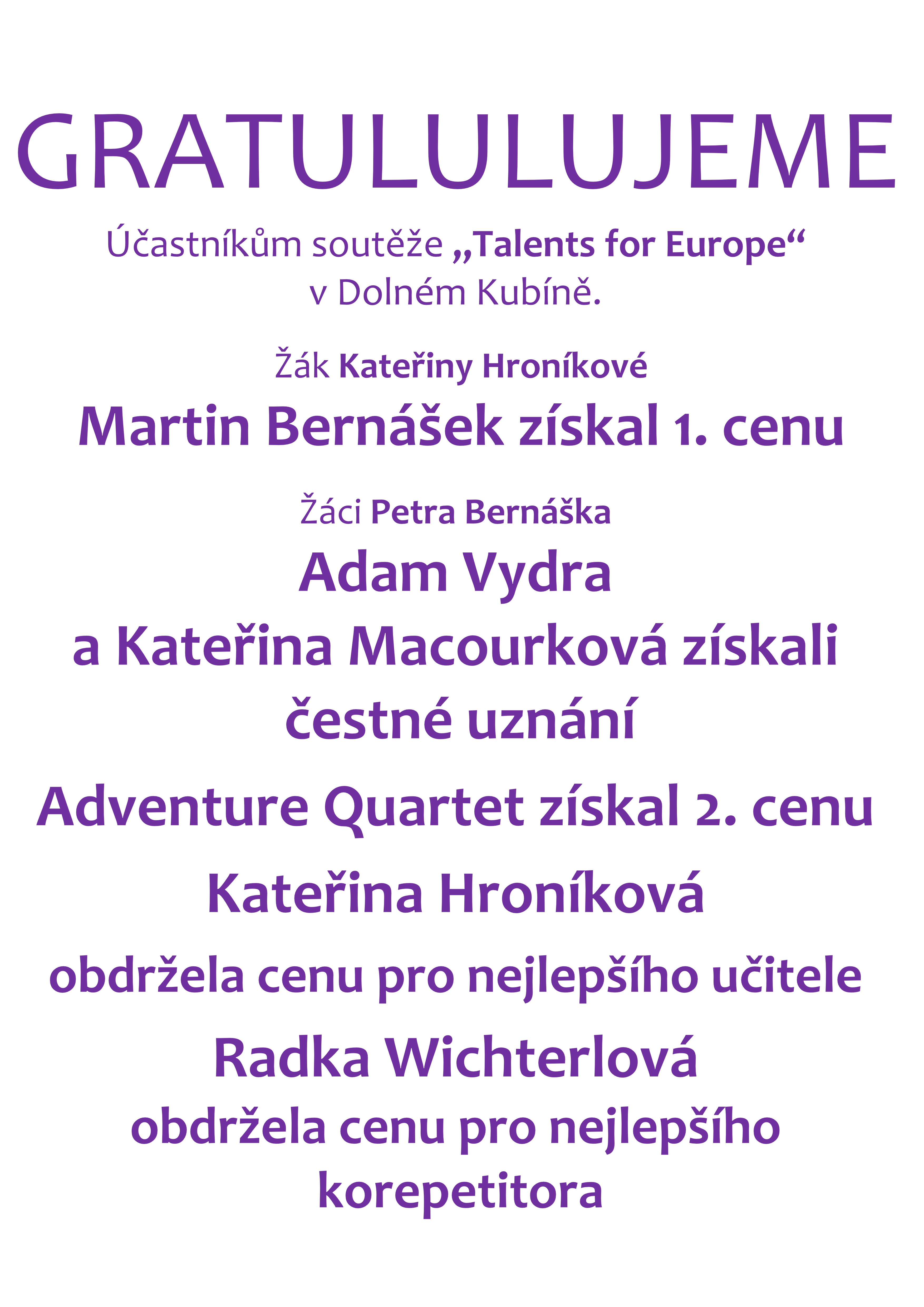 Gratulujeme -účastníkům soutěže „Talents for Europe“ v Dolném Kubíně