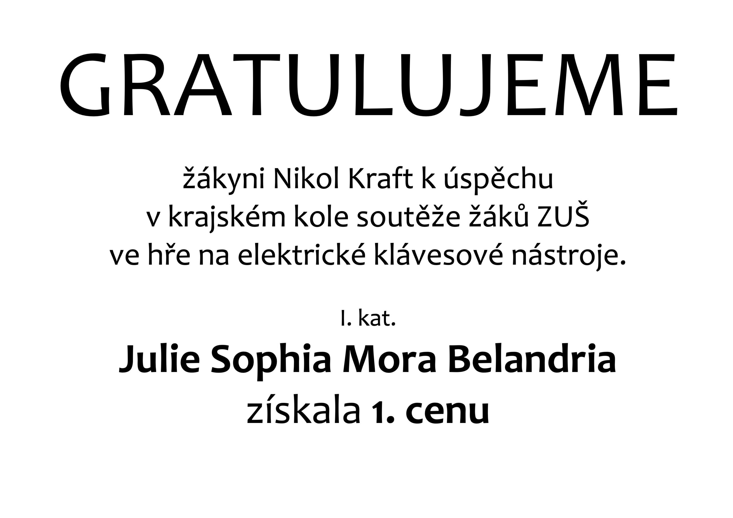Gratulujeme –  žákyni Nikol Kraft k úspěchu v krajském kole soutěže žáků ZUŠ ve hře na elektrické klávesové nástroje