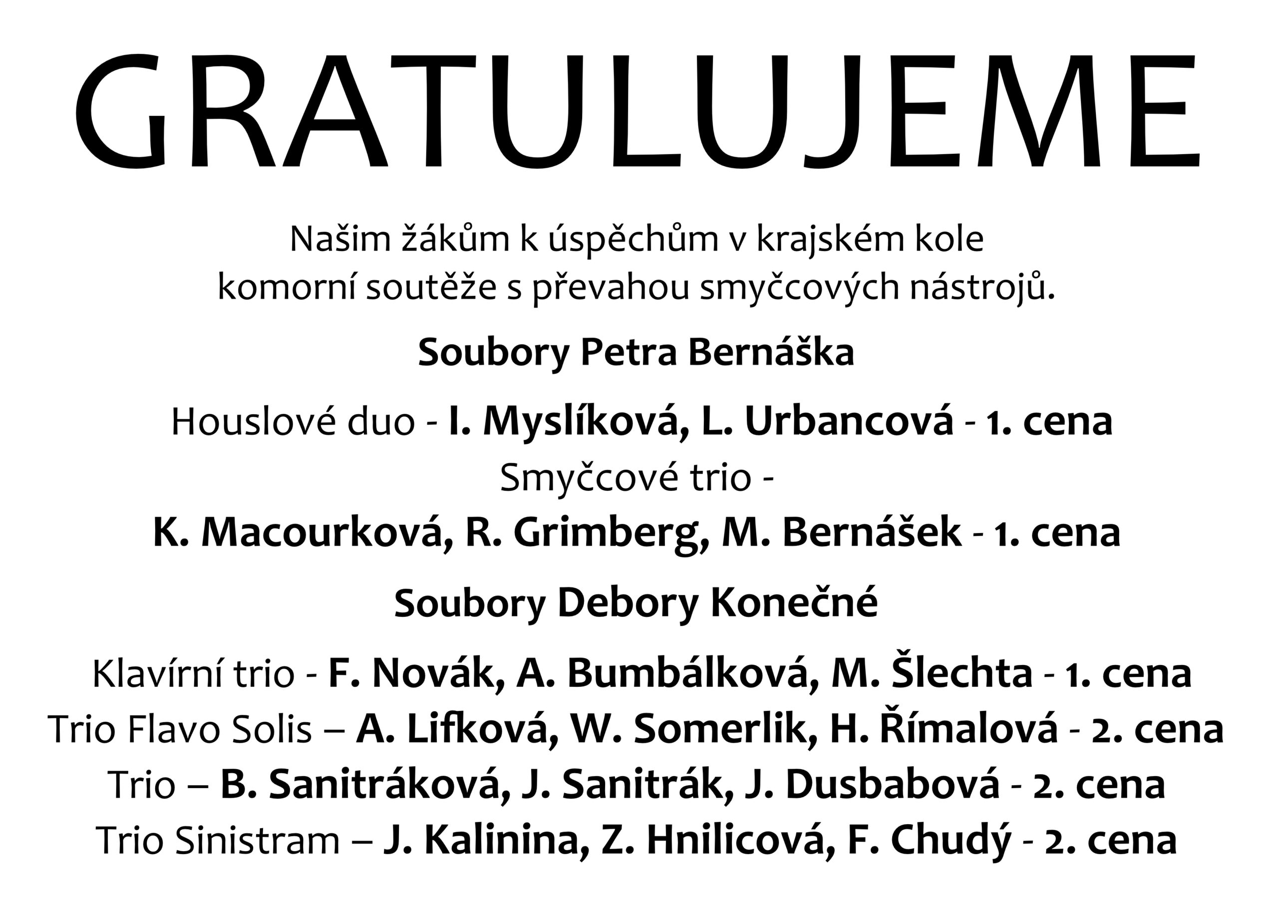 Gratulujeme – našim žákům k úspěchům v krajském kole komorní soutěže MŠMT s převahou smyčcových nástrojů