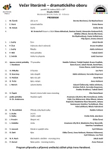 Večer literárně – dramatického oboru 30. května – program