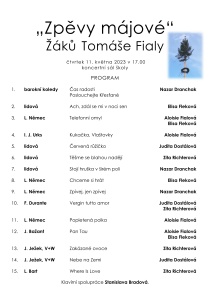 „Zpěvy májové“ žáků Tomáše Fialy 11. května – program